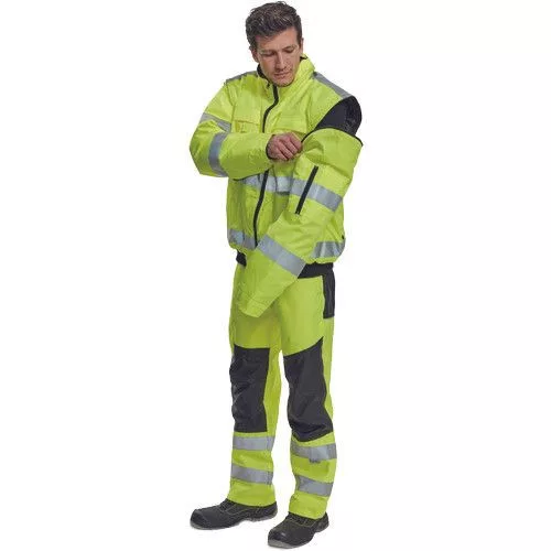 • jólláthatósági bélelt dzseki 2 az 1- ben fényvisszavető csíkokkal, EN 471: 3,2 • levehető ujjakkal, így mellényként is hordható • gallérba hajtott kapucnival • hegesztett varratokkal • 3M fényvisszavető csíkokkal • vízállóság 3. osztály és lélegzőképesség 1. osztály az EN 343 szabvány szerint