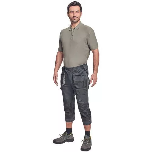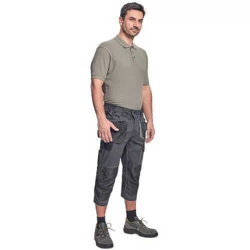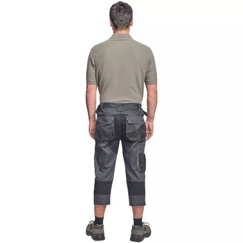 Dinamikus vonalvezetésű, modern szabású férfi 3/4-es nadrág, rugalmas, innovatív TRIFIBETEX® anyagból. Alacsony, gumírozott derékkal készül, láb- és üleprészen tartós, tripla varrásokkal. Praktikus kialakítás: tágas, multifunkcionális első zsebek szerszámtartó pánttal, 2 hátsó zseb Oxford erősítéssel, a combon telefontartó zseb tépőzáras zsebfedővel, külön zsebek vonalzónak, késnek, kalapácsnak, egyedi repülőzseb, D-gyűrű, és szerszámtartó hurok a derékpánton. A munkaruha színeivel harmonizáló fényvisszavető elemekkel egészítettük ki. Anyagösszetétel: 62% pamut, 35% poliészter, 3% elasztán • 260 g/m2