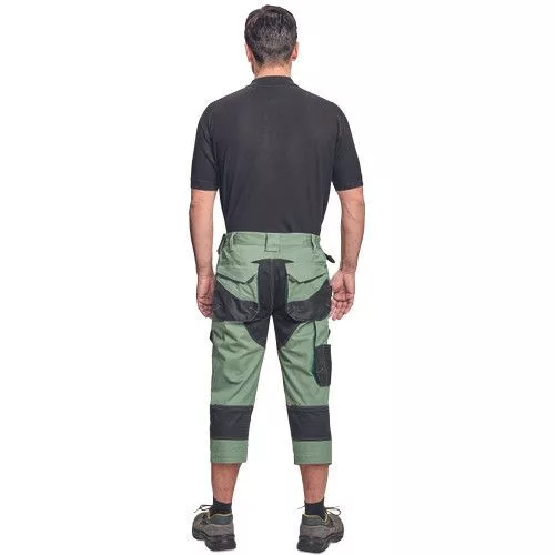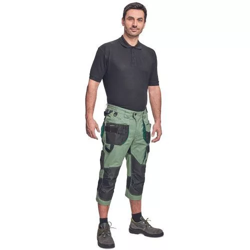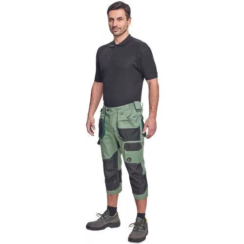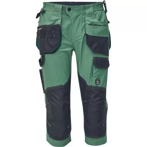 Dinamikus vonalvezetésű, modern szabású férfi 3/4-es nadrág, rugalmas, innovatív TRIFIBETEX® anyagból. Alacsony, gumírozott derékkal készül, láb- és üleprészen tartós, tripla varrásokkal. Praktikus kialakítás: tágas, multifunkcionális első zsebek szerszámtartó pánttal, 2 hátsó zseb Oxford erősítéssel, a combon telefontartó zseb tépőzáras zsebfedővel, külön zsebek vonalzónak, késnek, kalapácsnak, egyedi repülőzseb, D-gyűrű, és szerszámtartó hurok a derékpánton. A munkaruha színeivel harmonizáló fényvisszavető elemekkel egészítettük ki. Anyagösszetétel: 62% pamut, 35% poliészter, 3% elasztán • 260 g/m2