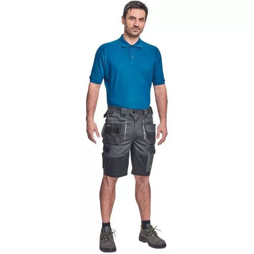 • férfi munka rövidnadrág rugalmas Trifibetex® anyagból • ergonomikus szabás • alacsony, gumírozott derék • tartós tripla varrás a szárakon és az üleprészen • tágas multifunkcionális első zsebek szerszámtartó pánttal • 2 hátsó zseb Oxford erősítéssel • a száron telefontartó zseb tépőzáras zsebfedővel • külön zsebek vonalzónak, késnek, kalapácsnak • egyedi kivitelű repülőzseb • D-gyűrű • szerszámtartó hurok a derékpánton • fényvisszavető részletek