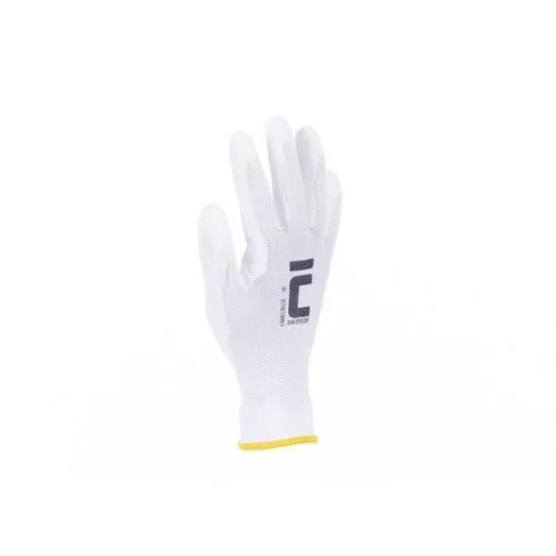 • varrat nélküli kötött poliészter kesztyű PU-ba mártva • légáteresztő, kiváló tapintás és fogásbiztonság száraz körülmények között • tűfinomság: 13 gg