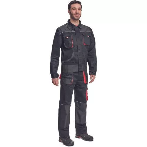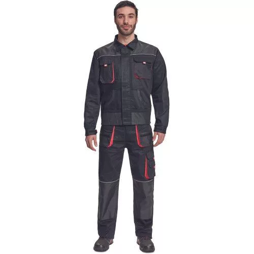 • férfi munkakabát • cipzáras kivitelben, tépőzáras hajtókával • 2 tépőzáras mellzseb • 2 multifunkcionális oldalzseb • OXFORD poliészter erősítés könyökrészeken és a vállakon • 100% pamut, 235g/m2