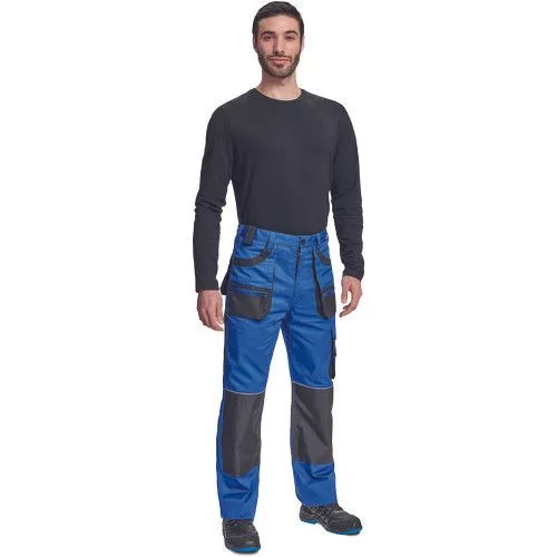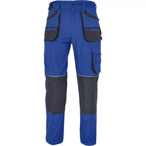 • férfi munkanadrág • 6 multifunkciós zseb • OXFORD poliészter erősítésekkel az igénybevett részeken • térdvédő behelyezésére alkalmas, megerősített térdrész • leengedhető szárak • anyaga 100% pamut, 235g/m2