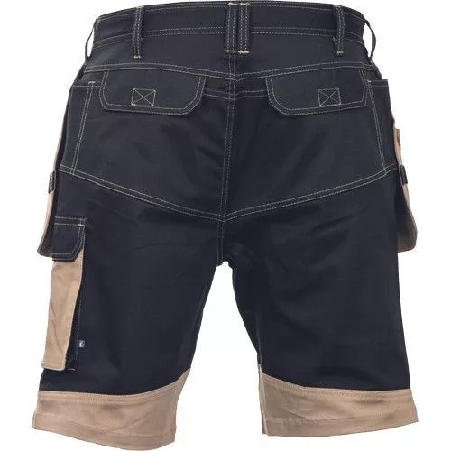 • férfi munkanadrág rugalmas derékkal • elöl 2 szerszámzsebbel, 1 cipzáras oldalzsebbel, 1 zsebfedős oldalzsebbel a szárakon, 2 zsebfedős hátsó zsebbel, D-gyűrűvel • dekoratív varratok