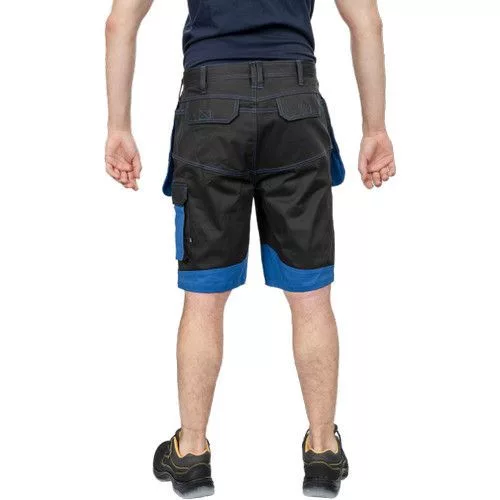 • férfi munkanadrág rugalmas derékkal • elöl 2 szerszámzsebbel, 1 cipzáras oldalzsebbel, 1 zsebfedős oldalzsebbel a szárakon, 2 zsebfedős hátsó zsebbel, D-gyűrűvel • dekoratív varratok