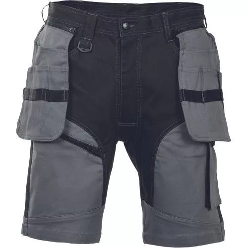 • férfi munkanadrág rugalmas derékkal • elöl 2 szerszámzsebbel, 1 cipzáras oldalzsebbel, 1 zsebfedős oldalzsebbel a szárakon, 2 zsebfedős hátsó zsebbel, D-gyűrűvel • dekoratív varratok
