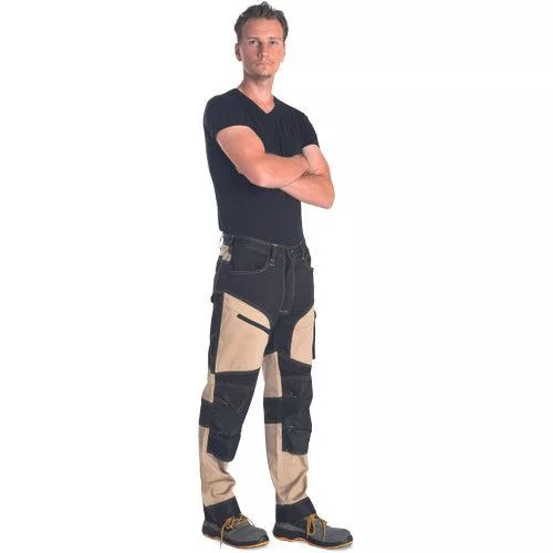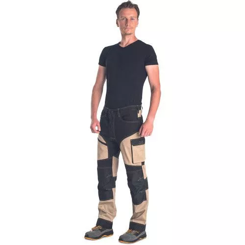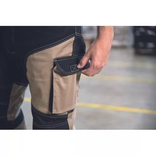 • minőségi férfi munkanadrág elasztikus anyagból • 2 oldalzseb • 2 hátsó zseb tépőzárral • 2 combzseb • megerősített térdzsebek térdvédő betét behelyezési lehetőséggel • hosszabbítható nadrágszárak akár 5 cm-rel • díszvarrás