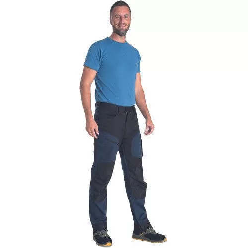 • minőségi férfi munkanadrág elasztikus anyagból • 2 oldalzseb • 2 hátsó zseb tépőzárral • 2 combzseb • megerősített térdzsebek térdvédő betét behelyezési lehetőséggel • hosszabbítható nadrágszárak akár 5 cm-rel • díszvarrás