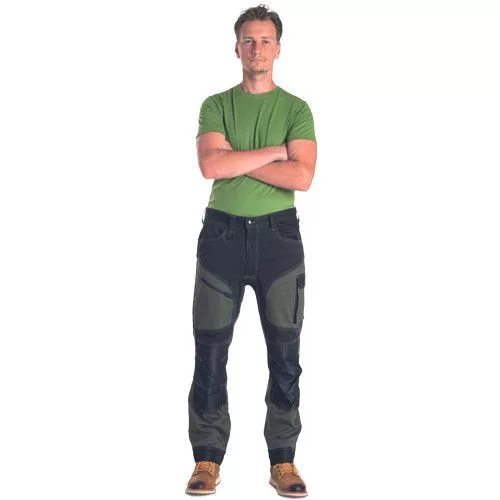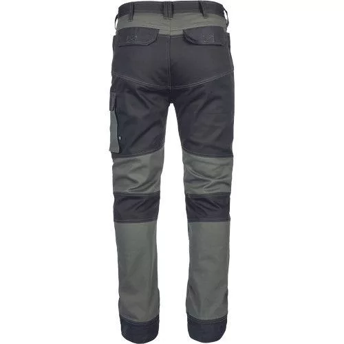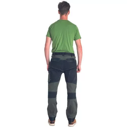 • minőségi férfi munkanadrág elasztikus anyagból • 2 oldalzseb • 2 hátsó zseb tépőzárral • 2 combzseb • megerősített térdzsebek térdvédő betét behelyezési lehetőséggel • hosszabbítható nadrágszárak akár 5 cm-rel • díszvarrás