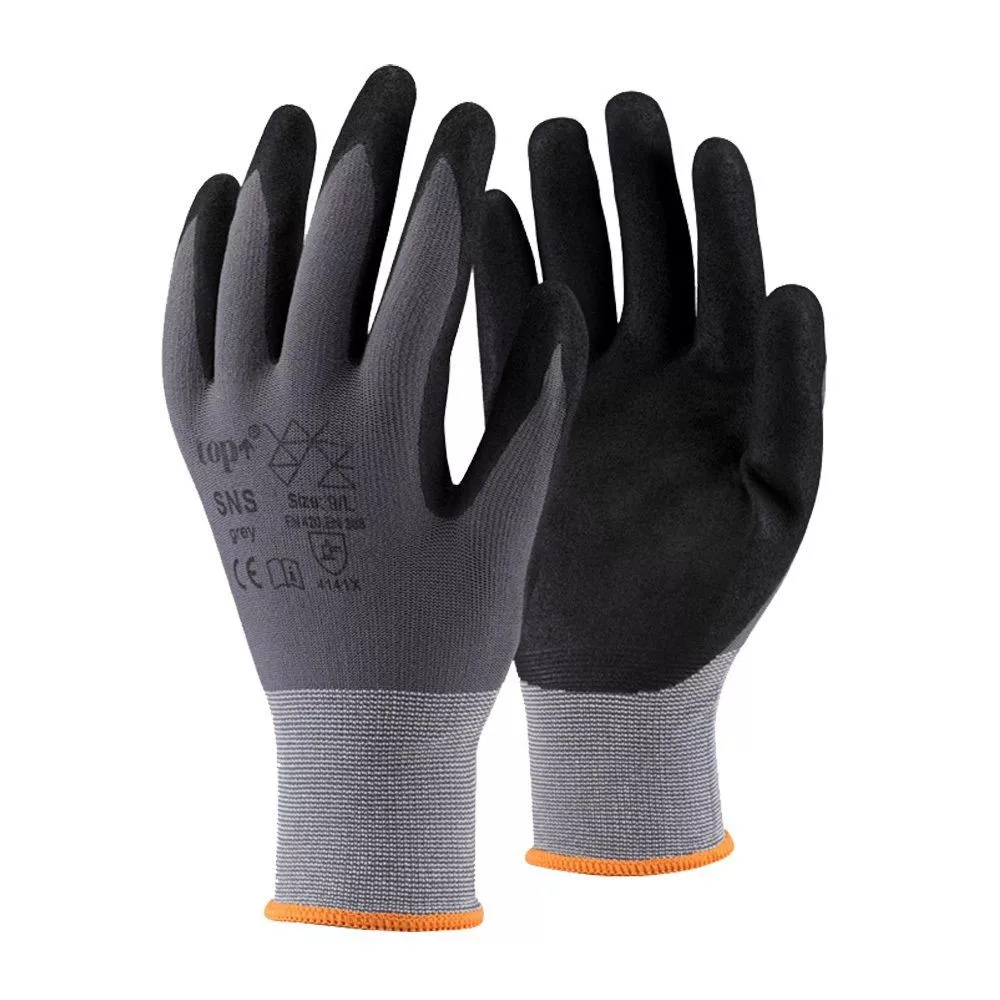 TOP SNS homokszemcsés nitril habba ujjvégig mártott védőkesztyű – megbízható fogásbiztonság és kényelmes viselet