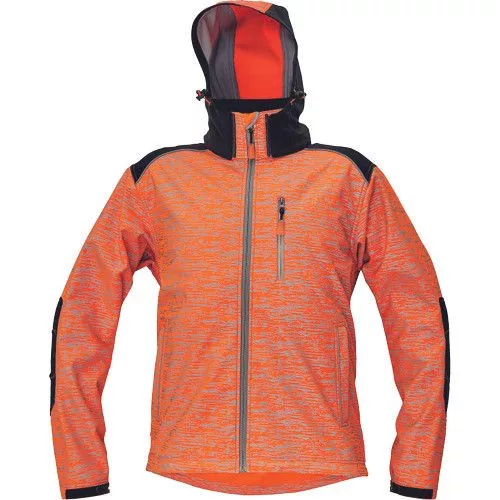 • férfi softshell kabát fényvisszavető festéssel a fluoreszkáló színű szöveten • megerősített vállak és könyökrész • 1 cipzáras mellzseb • 2 oldalzseb • állítható kapucni • a váll és a zsebek szegélye fényvisszavető • állítható kerületű ujjvégek és passzé