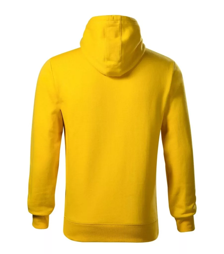 címkementes - egyedileg márkázható, egyenes szabás oldalvarrással, zsinórral összehúzható, bélelt kapucni, hátsó nyakszegély belső oldala saját színű anyagból, rávarrt kenguru zseb , 2:2 bordás kötésű szegély és mandzsetták 5 % elasztánnal, bolyhos belső oldal