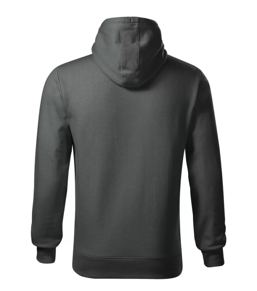 egyenes szabás oldalvarrással, zsinórral összehúzható, bélelt kapucni, hátsó nyakszegély belső oldala saját színű anyagból, rávarrt kenguru zseb, 2:2 bordás kötésű szegély és mandzsetták 5 % elasztánnal, bolyhos belső oldal