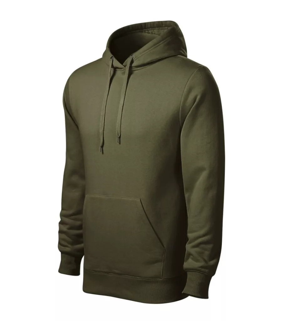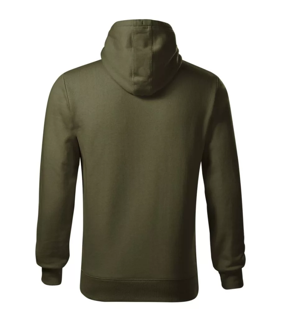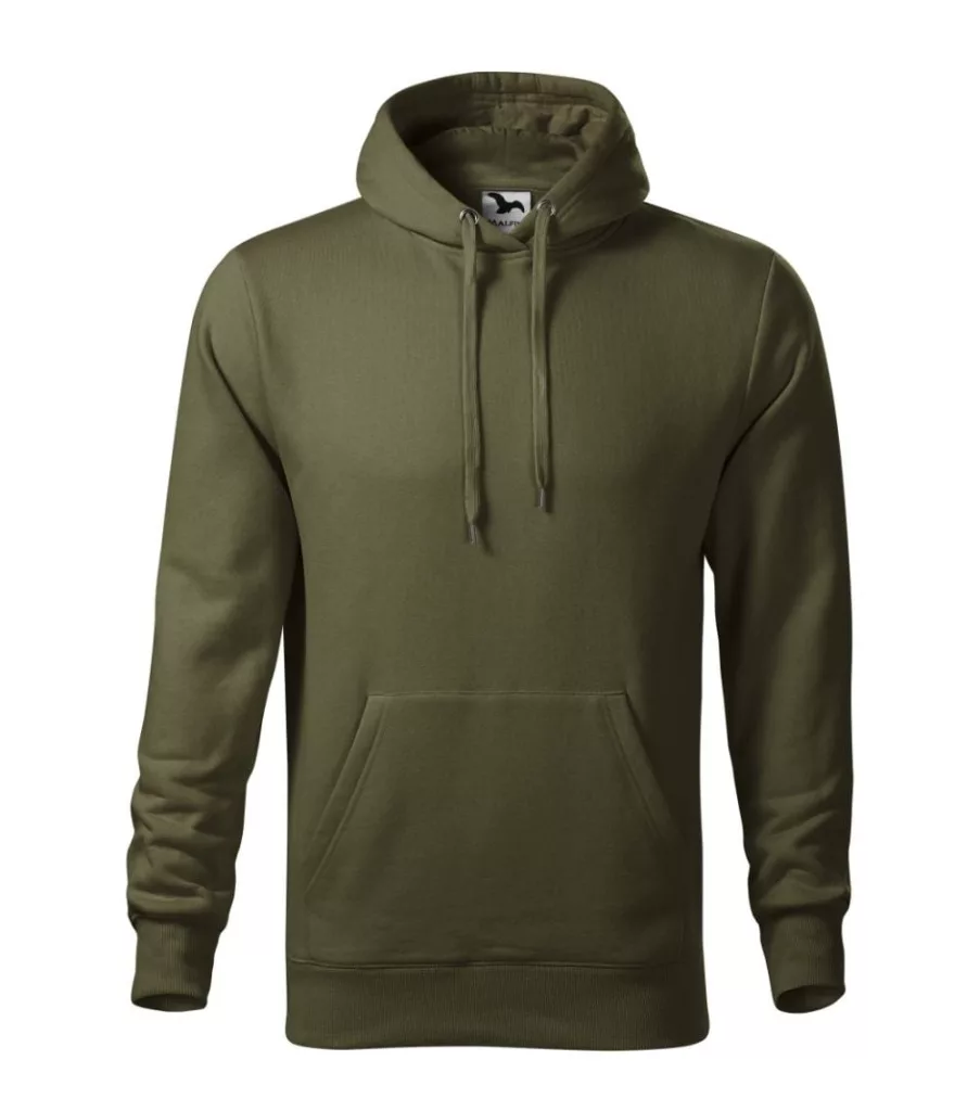 egyenes szabás oldalvarrással, zsinórral összehúzható, bélelt kapucni, hátsó nyakszegély belső oldala saját színű anyagból, rávarrt kenguru zseb, 2:2 bordás kötésű szegély és mandzsetták 5 % elasztánnal, bolyhos belső oldal
