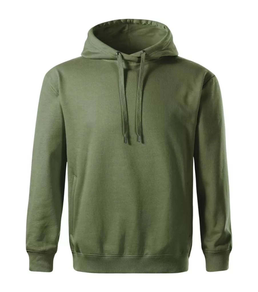 címkementes - egyedileg márkázható, laza szabású, oldalvarrással, zsinórral összehúzható, bélelt kapucni, méretcímke természetes anyagból a hátsó nyakrészen, hátsó nyakszegély belső oldala saját színű anyagból, low cap ujjak, rejtett kenguru zsebek, 2:2 bordás kötésű szegély és mandzsetták 5 % elasztánnal, bolyhos belső oldal