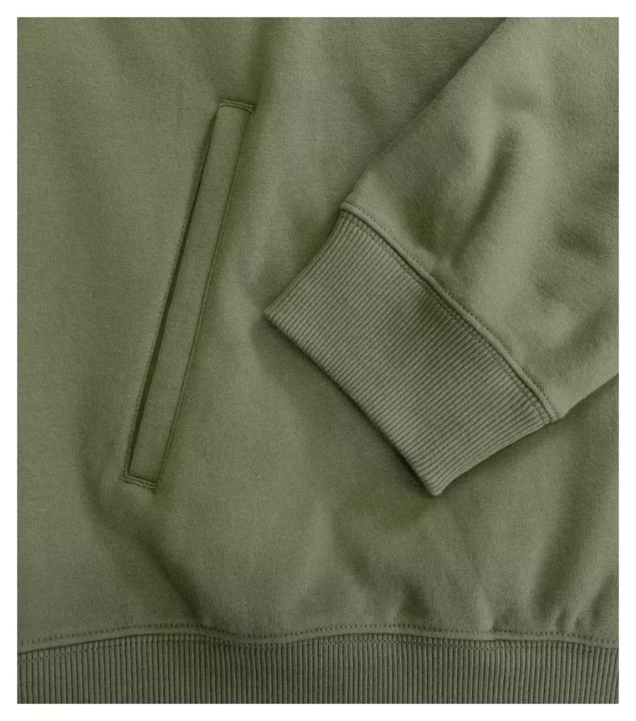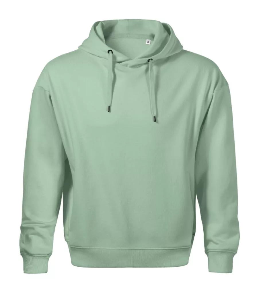 címkementes - egyedileg márkázható, laza szabású, oldalvarrással, zsinórral összehúzható, bélelt kapucni, méretcímke természetes anyagból a hátsó nyakrészen, hátsó nyakszegély belső oldala saját színű anyagból, low cap ujjak, rejtett kenguru zsebek, 2:2 bordás kötésű szegély és mandzsetták 5 % elasztánnal, bolyhos belső oldal