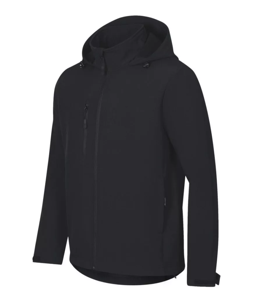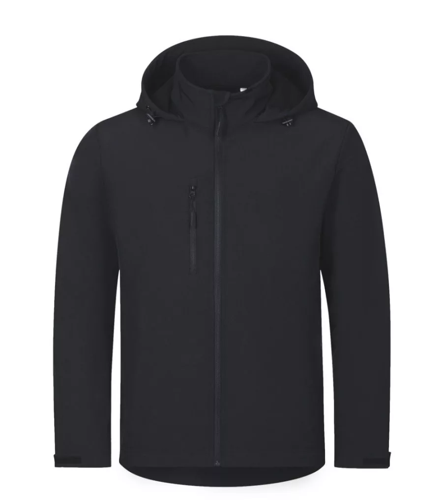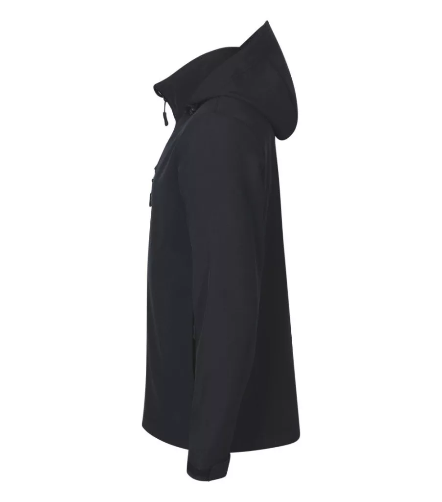 címkementes - egyedileg márkázható, 2-régetű softshell, egyenes szabás oldalrészekkel, fordított cipzár teljes hosszban állvédővel, elasztikus húzózsinór a kapucniban és az alsó szegélynél, méretcímke természetes anyagból a hátsó nyakrészen, állítható ujjvégek tépőzárral, zsebek fordított cipzárral, mellzsebek , ívelt, hátul kissé hosszított alj, belső polár bolyhosodás ellen kezelve