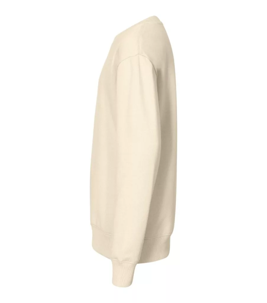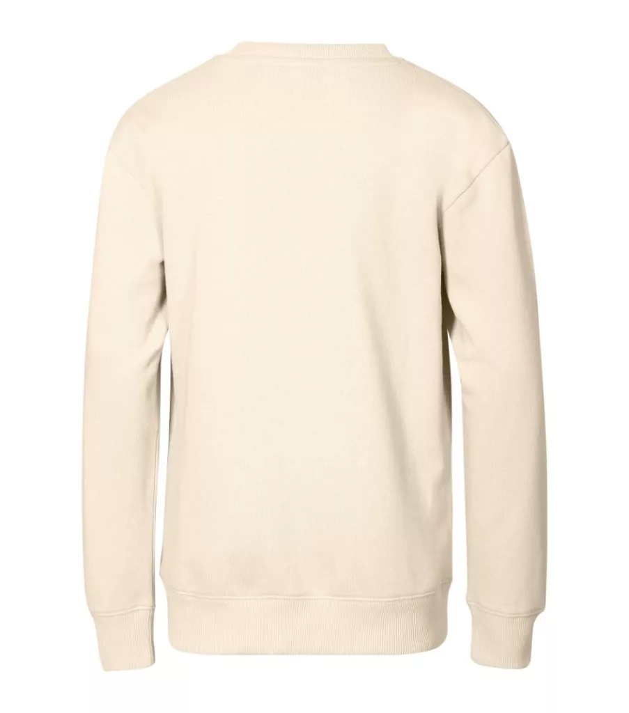 címkementes - egyedileg márkázható, egyenes szabás oldalirányú bevarrásokkal, méretcímke természetes anyagból a hátsó nyakrészen, low cap ujjak, 2:2 bordás kötésű szegély, nyakkivágás és mandzsetták 5 % elasztánnal, bolyhos belső oldal