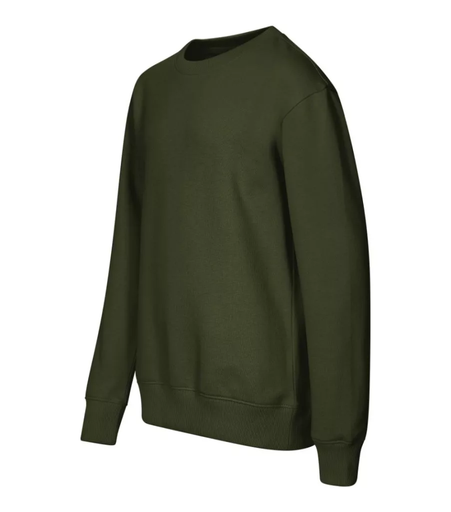 címkementes - egyedileg márkázható, egyenes szabás oldalirányú bevarrásokkal, méretcímke természetes anyagból a hátsó nyakrészen, low cap ujjak, 2:2 bordás kötésű szegély, nyakkivágás és mandzsetták 5 % elasztánnal, bolyhos belső oldal