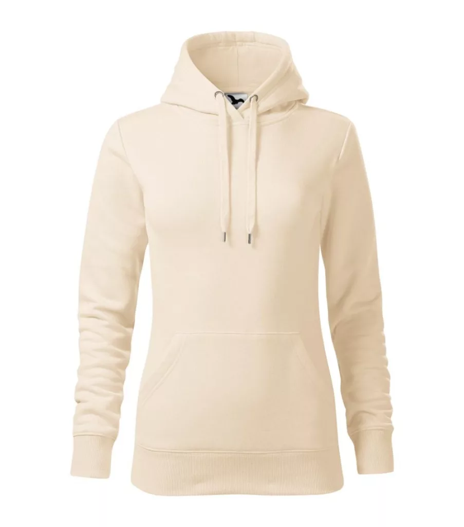 enyhén karcsúsított szabás oldalvarrással, zsinórral összehúzható, bélelt kapucni, hátsó nyakszegély belső oldala saját színű anyagból, rávarrt kenguru zseb, 2:2 bordás kötésű szegély és mandzsetták 5 % elasztánnal, bolyhos belső oldal