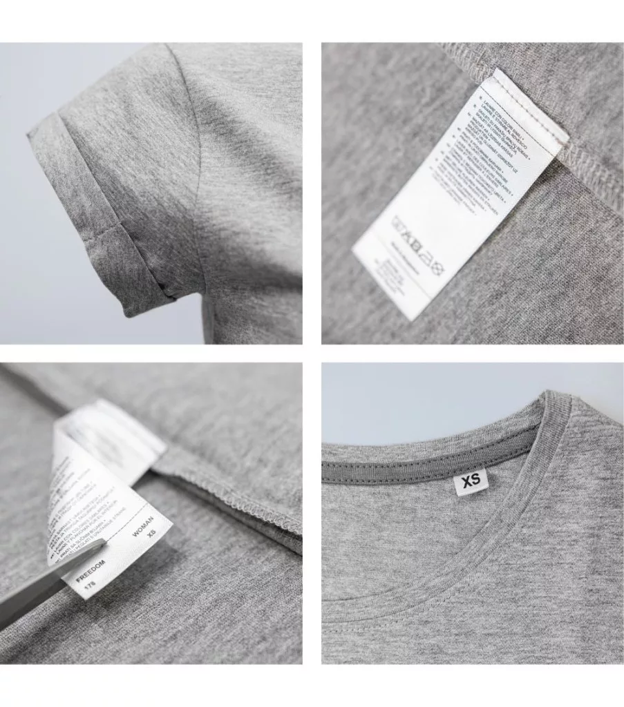címkementes - egyedileg márkázható, laza, enyhén karcsúsított forma, térd feletti hosszúság, mélyebb, kerek nyakkivágás, keskeny nyakkivágás saját anyagával szegélyezve 5 % elasztánnal, méretcímke természetes anyagból a hátsó nyakrészen, hátsó nyakszegély belső oldalán 36 színű szalag, váll vállszalaggal megerősítve, felhajtott ujjak, 4 ponton rögzítve