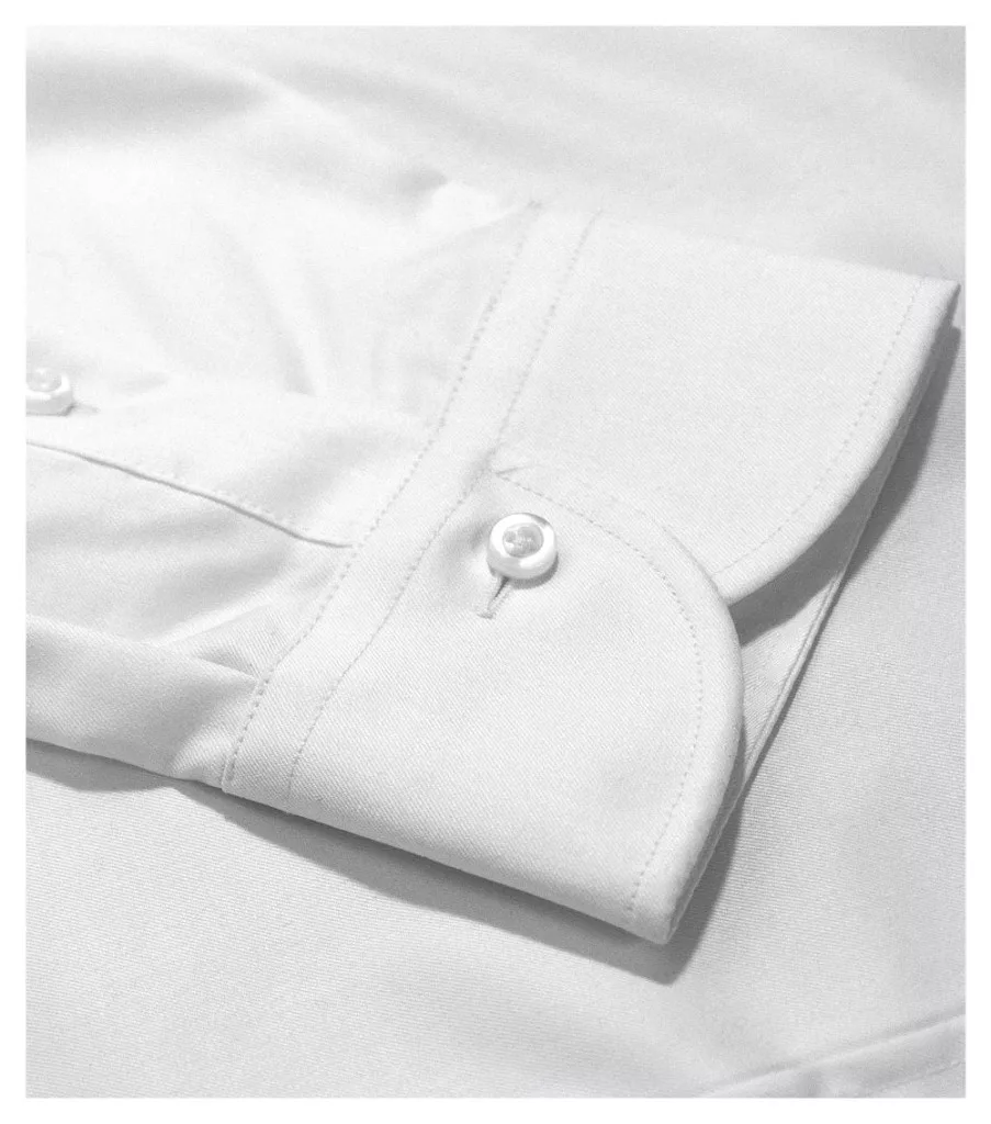 híres cseh szabó, Roman Humlíček által tervezve, cérna extrahosszú szálakból, enyhén szűkített szabás, oldalvarrással, hátrész dupla letűzéssel és szűkítővarrásal, első rész bevarrásokkal a deréknél, dupla ing gallér, elülső rész gombolópánttal végződik, hosszú ujjú, kerek mandzsettával és 2 gombbal, gyöngy gombok 00 színben (2 tartalék gomb), ívelt alsó szél