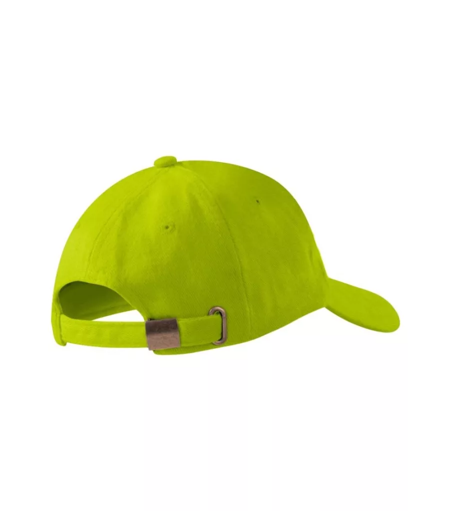 ötpaneles szabás, összekapcsolt első panel, varrott, enyhén hajlított felső rész, hímzett légáteresztő lyukak, nedvszívó pánt, rézkapcsokkal állítható méret
