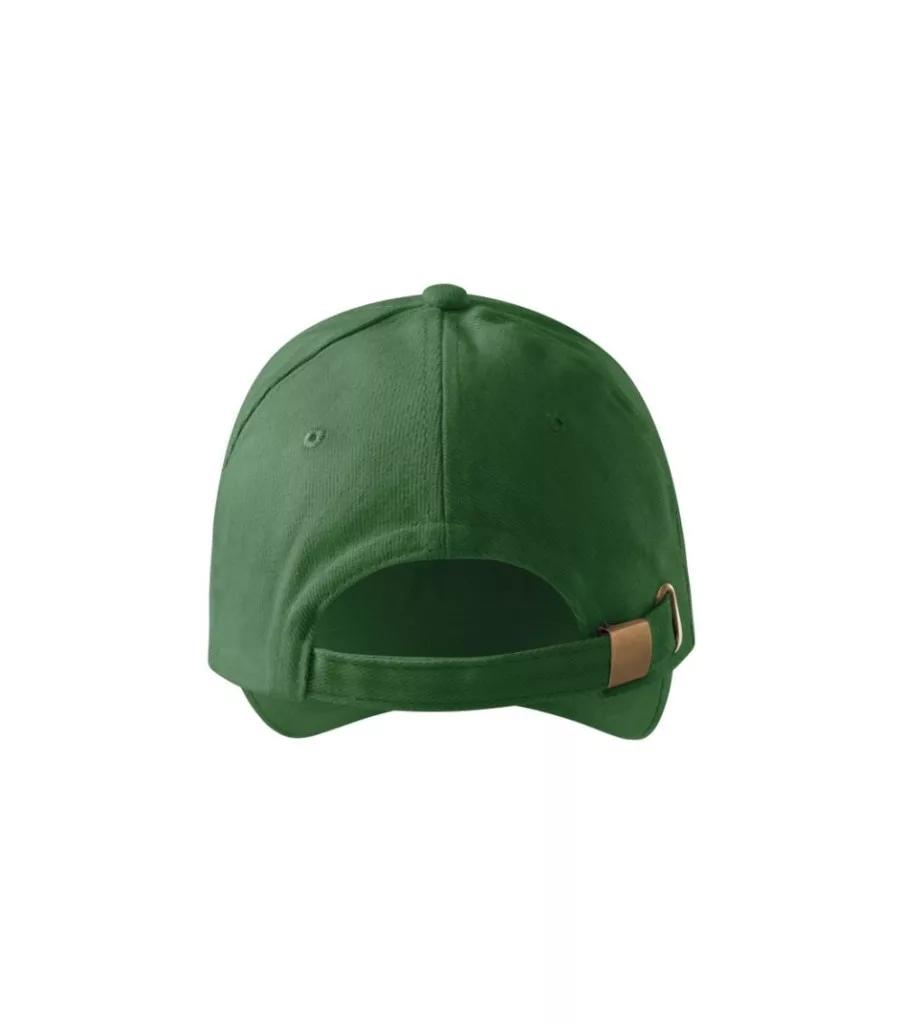 hatpaneles szabás, összekapcsolt 2 első panel, varrott, enyhén hajlított felső rész kontraszt csíkkal, hímzett légáteresztő lyukak, nedvszívó pánt, rézkapcsokkal állítható méret