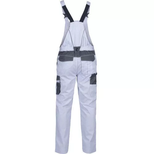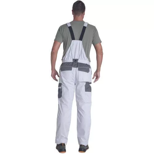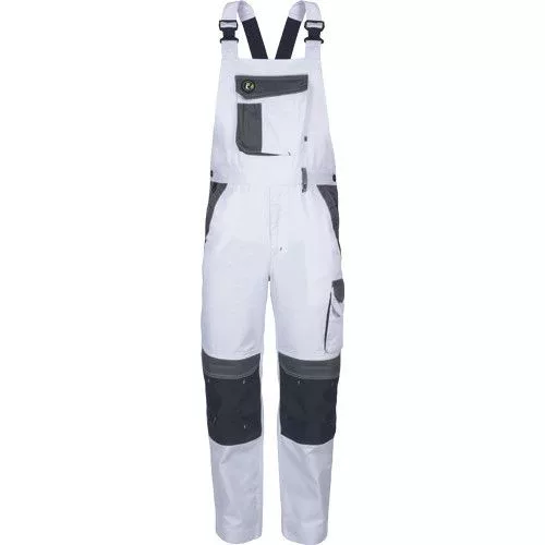 • férfi munkás mellesnadrág rugalmas derékpánttal • 2 oldalzseb • 1 combzseb • 1 mellzseb tépőzárral • 2 hátsó zseb tépőzárral • térderősítés opcionálisan behelyezhető térdpárnával • fényvisszavető részletek • állítható szárhossz