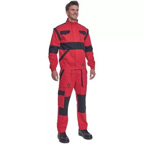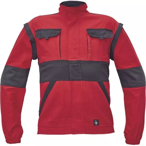 • férfi cipzáras munkakabát levehető ujjakkal • 2 oldalzseb, 2 mellzseb • megerősítés a váll- és könyökrészeken • rugalmas mandzsetta és derékpánt • anyag: 100% pamut, anyagvastagság: 260 g/m2