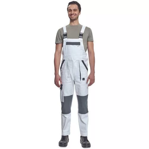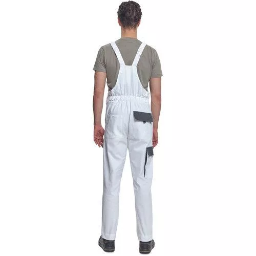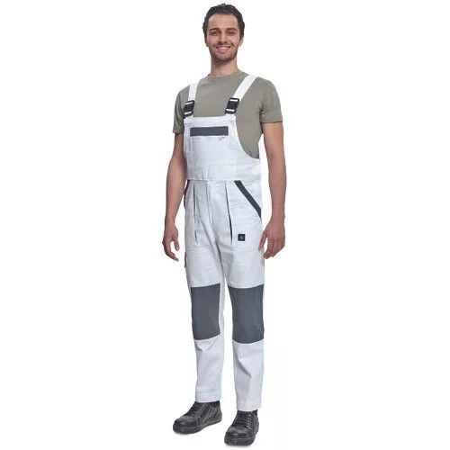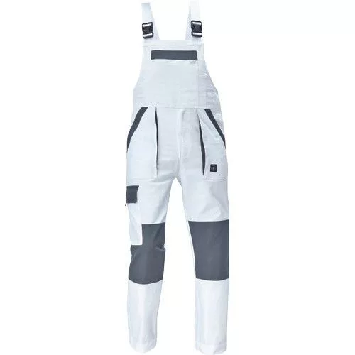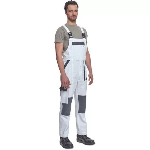 • férfi mellesnadrág rugalmas derékkal, széles pántokkal, műanyag csatokkal • 2 első zseb, 1 oldalzseb, 1 nagy mellzseb, 2 hátsó zseb • megerősített térdrész • leengedhető szárak