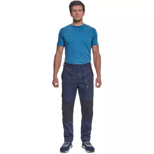 • férfi munkanadrág rugalmas derékkal • 2 első zseb, 1 oldalzseb, 2 hátsó zseb • megerősített térdrész • leengedhető szárak