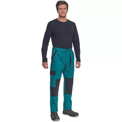 • férfi munkanadrág rugalmas derékkal • 2 első zseb, 1 oldalzseb, 2 hátsó zseb • megerősített térdrész • leengedhető szárak
