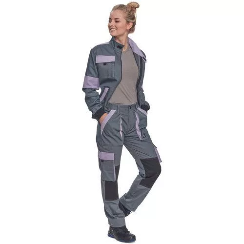 • női cipzáras munkakabát könnyű pamutszövetből • 2 első zseb • 2 dupla mellzseb zsebfedővel • 1 zseb a bal ujjon • megerősítés a váll-és könyökrészeken • rugalmas mandzsetta és derékszegély • anyag: 100% pamut, anyagvastagság: 220 g/m2