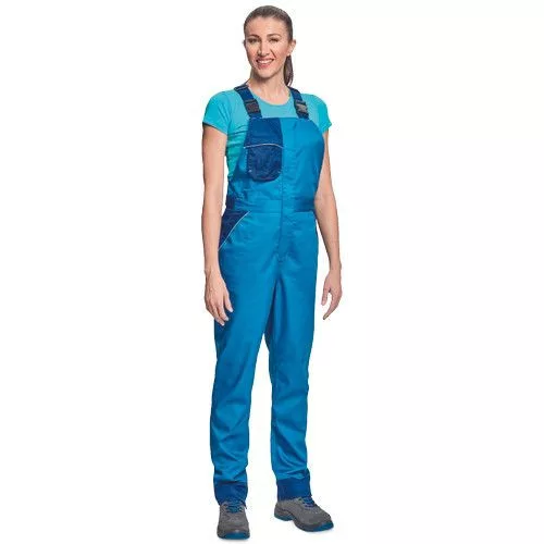 • női munkanadrág könnyű pamut-PES kevertszálas anyagból • nőies szabás • dekoratív paszpol kontrasztos színekkel • légáteresztő, köszönhetően hálós betéteknek • zsebfedővel fedett zsebek • a nadrágszárak hossza 5 cm-rel meghosszabbítható • 2 oldalsó zseb • 1 hátsó zseb • 1 mellkasi zseb, belül D-gyűrűvel •tartós anyagú • puhább, hajlékonyabb szövet