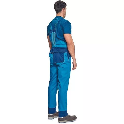 • férfi munkanadrág könnyű pamut-PES kevertszálas anyagból • dekoratív paszpol kontrasztos színekkel • légáteresztő, köszönhetően hálós betéteknek • zsebfedővel fedett zsebek • a nadrágszárak hossza 5 cm-rel meghosszabbítható • 2 oldalsó zseb • 1 hátsó zseb • 1 mellkasi zseb, belül D-gyűrűvel •tartós anyagú • puhább, hajlékonyabb szövet