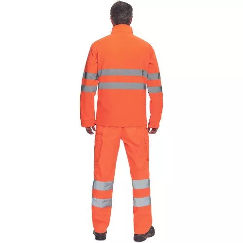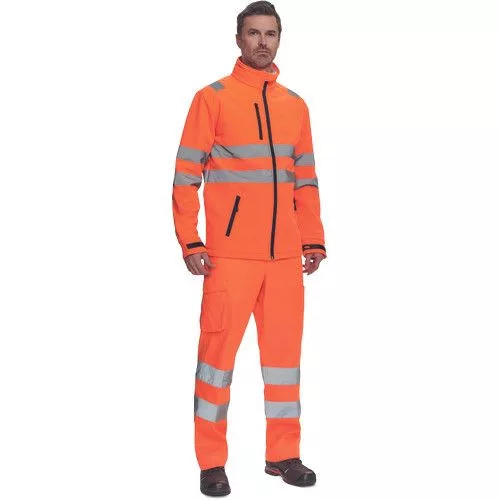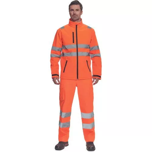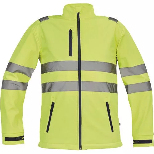 • Hi-Vis férfi softshell dzseki PU membránnal • 5 cm széles fényvisszavető csíkok az ujjakon és a test körül • cipzáras kialakítás • 1 mellzseb és 2 oldalzseb • tépőzárral szűkíthető mandzsetták • a dzseki alsó szegélye húzózsinórral szűkíthető