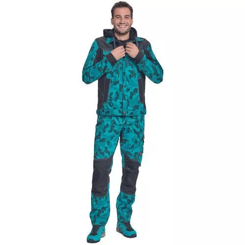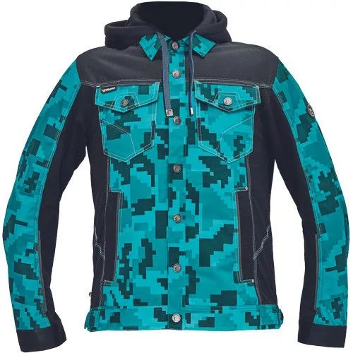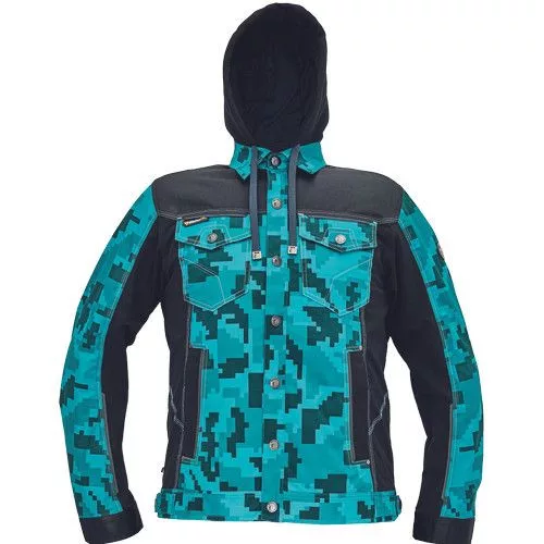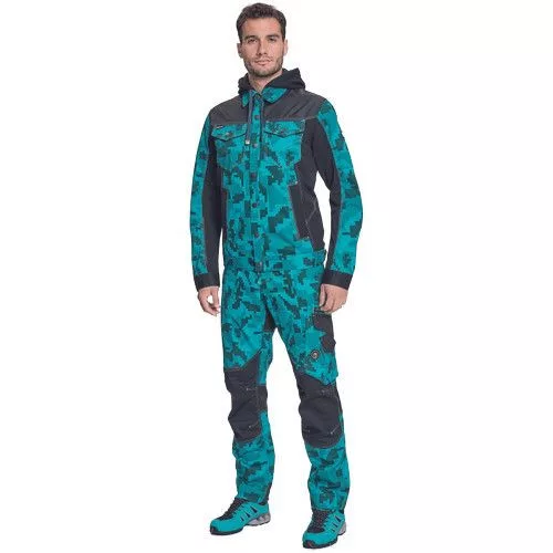 • férfi munkakabát férfi munkakabát innovatív, pamutgazdag, rugalmas TRIFIBETEX, illetve TRIFIBETEXPRO® anyagokból CORDURA® betétekkel, digitális terepmintával, fém gombok, állítható ujjvégek, 2 oldalsó zseb, 2 cipzáras mellkasi zseb, fényvisszavető csíkok