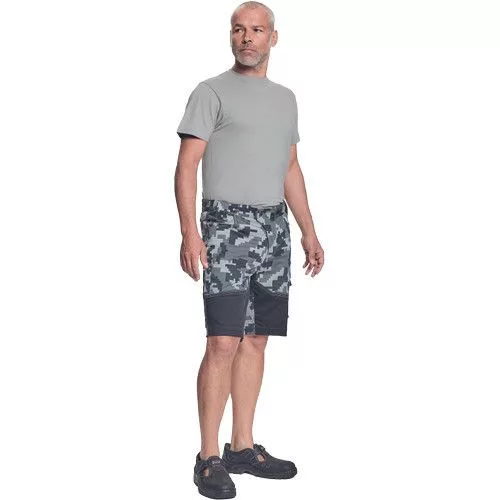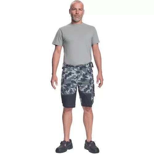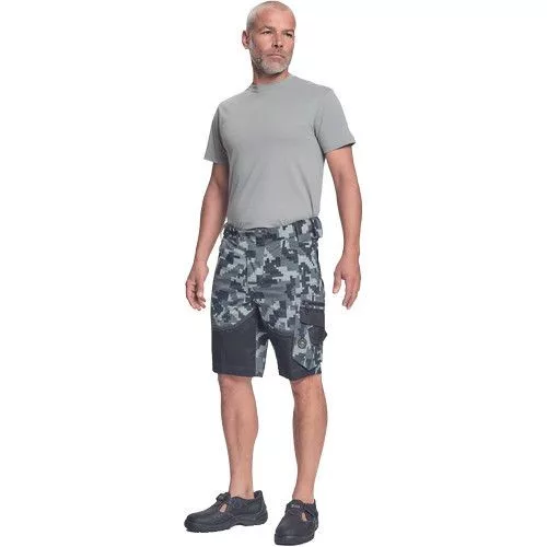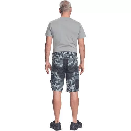 • férfi rövidnadrág innovatív • rugalmas Trifibetex® anyagból digitális terepmintával • 2 ékzseb • hátul 2 tépőzáras foltzseb • bal oldalon nagy multifunkciós zseb • jobb oldalon multifunkciós vonalzó • kés- és ceruzatartó • fém D gyűrű • rugalmas derék • fényvisszavető szegés • dekoratív tripla varrás kontrasztos színnel • kalapácstartó