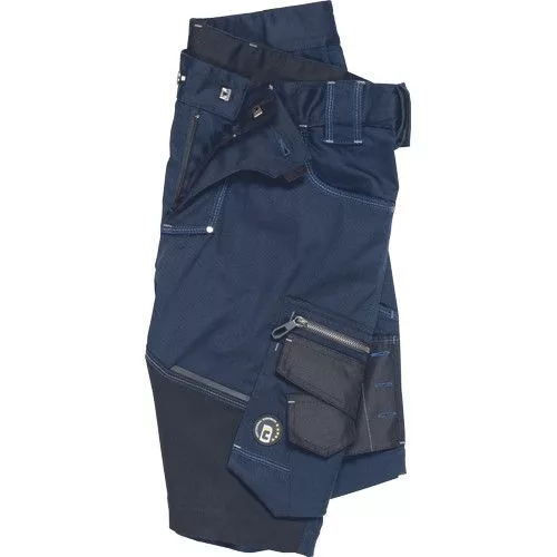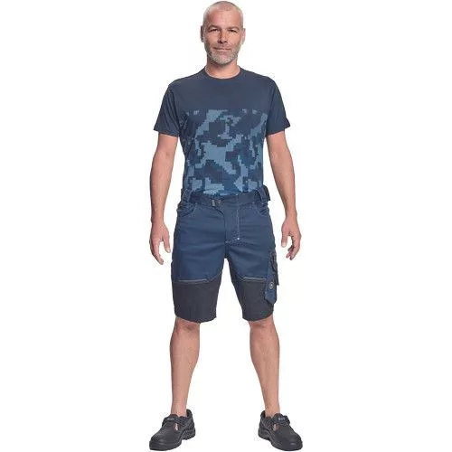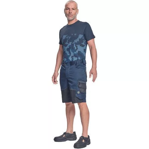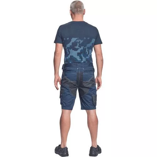 • férfi rövidnadrág innovatív, rugalmas Trifibetex® anyagból • 2 ékzseb • hátul 2 tépőzáras foltzseb • bal oldalon nagy multifunkciós zseb • jobb oldalon multifunkciós zseb vonalzónak • kés- és ceruzatartó • fém D gyűrű • rugalmas derék • fényvisszavető részletek • dekoratív tripla varrás kontrasztos színnel • kalapácstartó