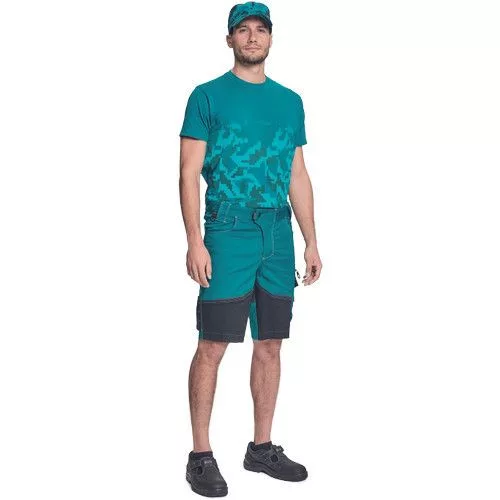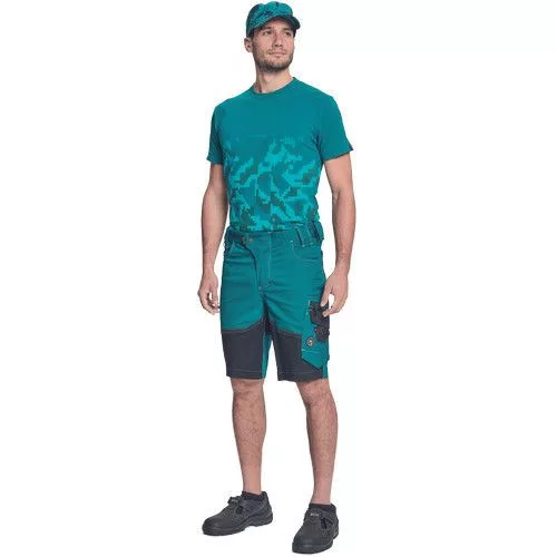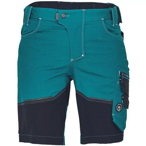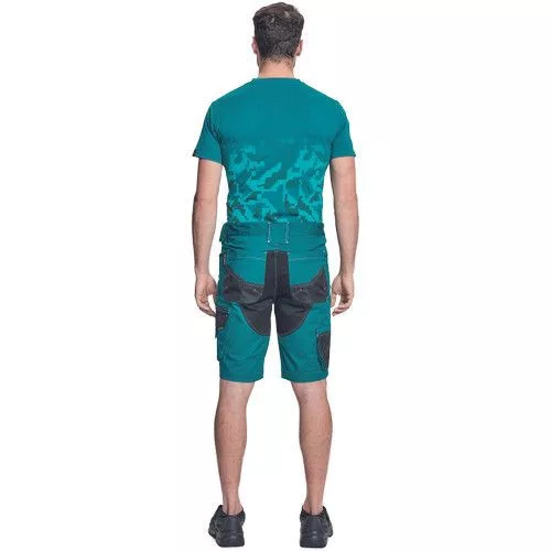 • férfi rövidnadrág innovatív, rugalmas Trifibetex® anyagból • 2 ékzseb • hátul 2 tépőzáras foltzseb • bal oldalon nagy multifunkciós zseb • jobb oldalon multifunkciós zseb vonalzónak • kés- és ceruzatartó • fém D gyűrű • rugalmas derék • fényvisszavető részletek • dekoratív tripla varrás kontrasztos színnel • kalapácstartó