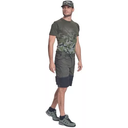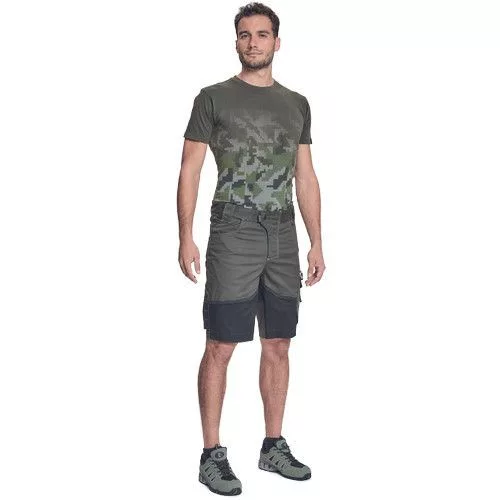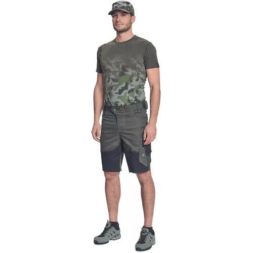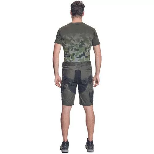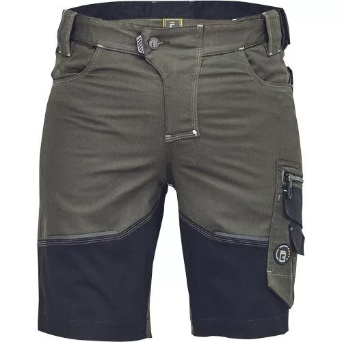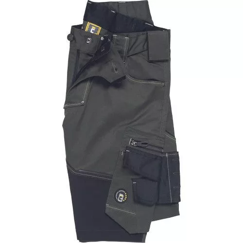 • férfi rövidnadrág innovatív, rugalmas Trifibetex® anyagból • 2 ékzseb • hátul 2 tépőzáras foltzseb • bal oldalon nagy multifunkciós zseb • jobb oldalon multifunkciós zseb vonalzónak • kés- és ceruzatartó • fém D gyűrű • rugalmas derék • fényvisszavető részletek • dekoratív tripla varrás kontrasztos színnel • kalapácstartó