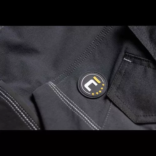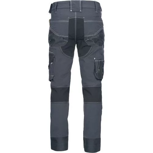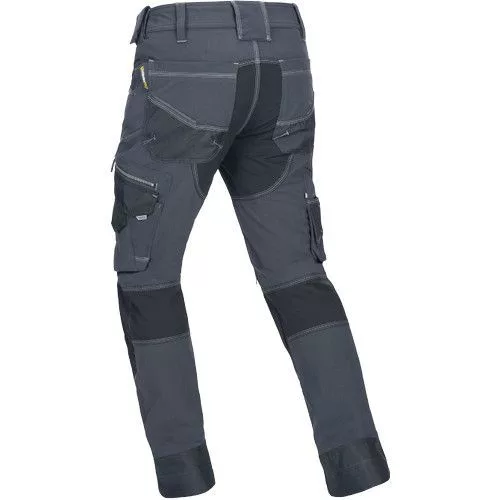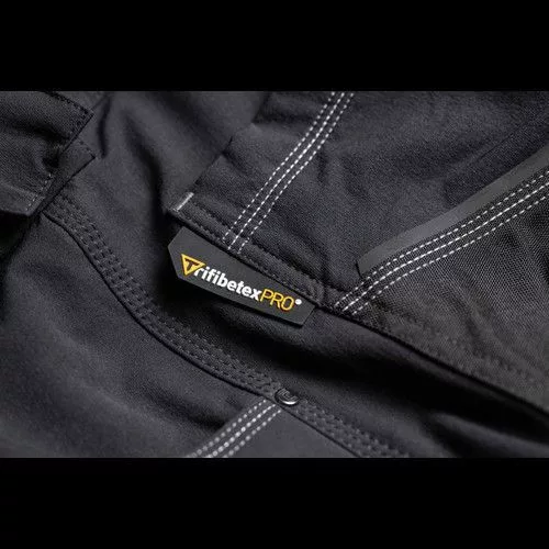 férfi munkanadrág innovatív, 4 irányban rugalmas TRIFIBETEX PRO® anyagból, kerek első zsebekkel, hátul 2 tépőzáras foltzsebbel, bal oldalt nagy multifunkciós zsebbel, jobb oldalt multifunkciós vonalzó, kés- és ceruzatartó és kalapácstartó is található. Fém D gyűrűvel. A Cordura® anyagból készült térderősítés egyben zseb is a behelyezhető térdelő szivacsnak. Derékon gumírozással, a nadrág szárában 5 cm leengedhető anyag van. Fényvisszavető elemek, dekoratív tripla varrás kontrasztos színnel hívja fel a figyelmet a ruhadaradra.