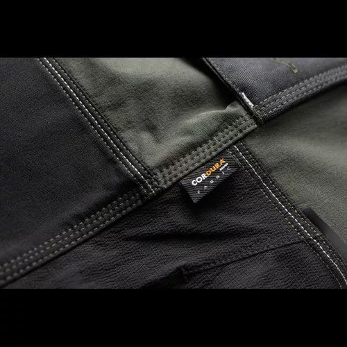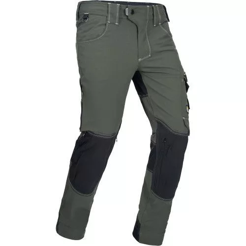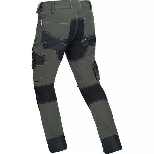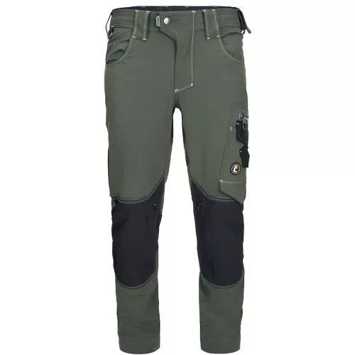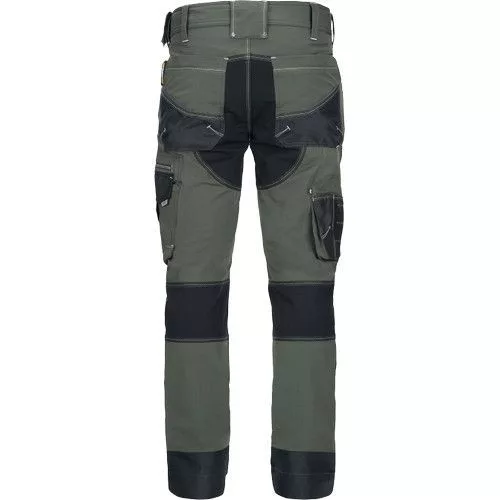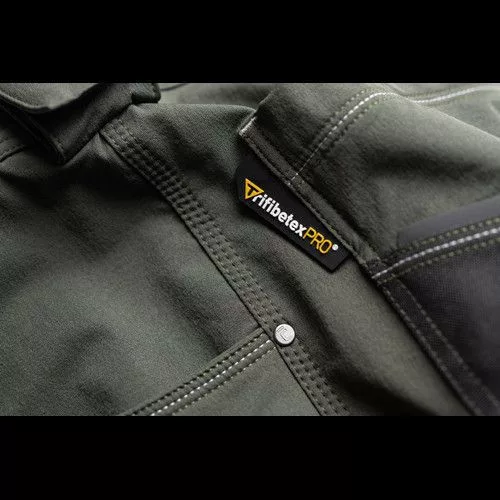férfi munkanadrág innovatív, 4 irányban rugalmas TRIFIBETEX PRO® anyagból, kerek első zsebekkel, hátul 2 tépőzáras foltzsebbel, bal oldalt nagy multifunkciós zsebbel, jobb oldalt multifunkciós vonalzó, kés- és ceruzatartó és kalapácstartó is található. Fém D gyűrűvel. A Cordura® anyagból készült térderősítés egyben zseb is a behelyezhető térdelő szivacsnak. Derékon gumírozással, a nadrág szárában 5 cm leengedhető anyag van. Fényvisszavető elemek, dekoratív tripla varrás kontrasztos színnel hívja fel a figyelmet a ruhadaradra.