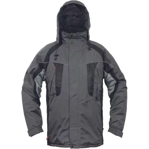 • bélelt, vízálló kabát gallérba hajtott kapucnival • külső szövet kopásállóságot növelő kezeléssel • húzózsinórral szűkíthető alsó szegély • fényvisszavető részletek