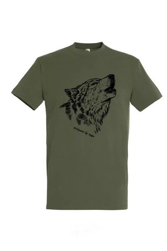 Póló (farkas Mintával) Kereknyakú (100%pamut 190gr/m2) Top, Katonai Szín HA-top_pk-h_wolf/armySzíne: army