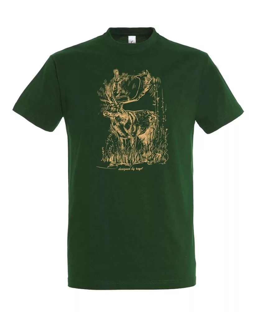 Póló (szarvas mintával) kereknyakú (100%pamut 190gr/m2) top, bottle green