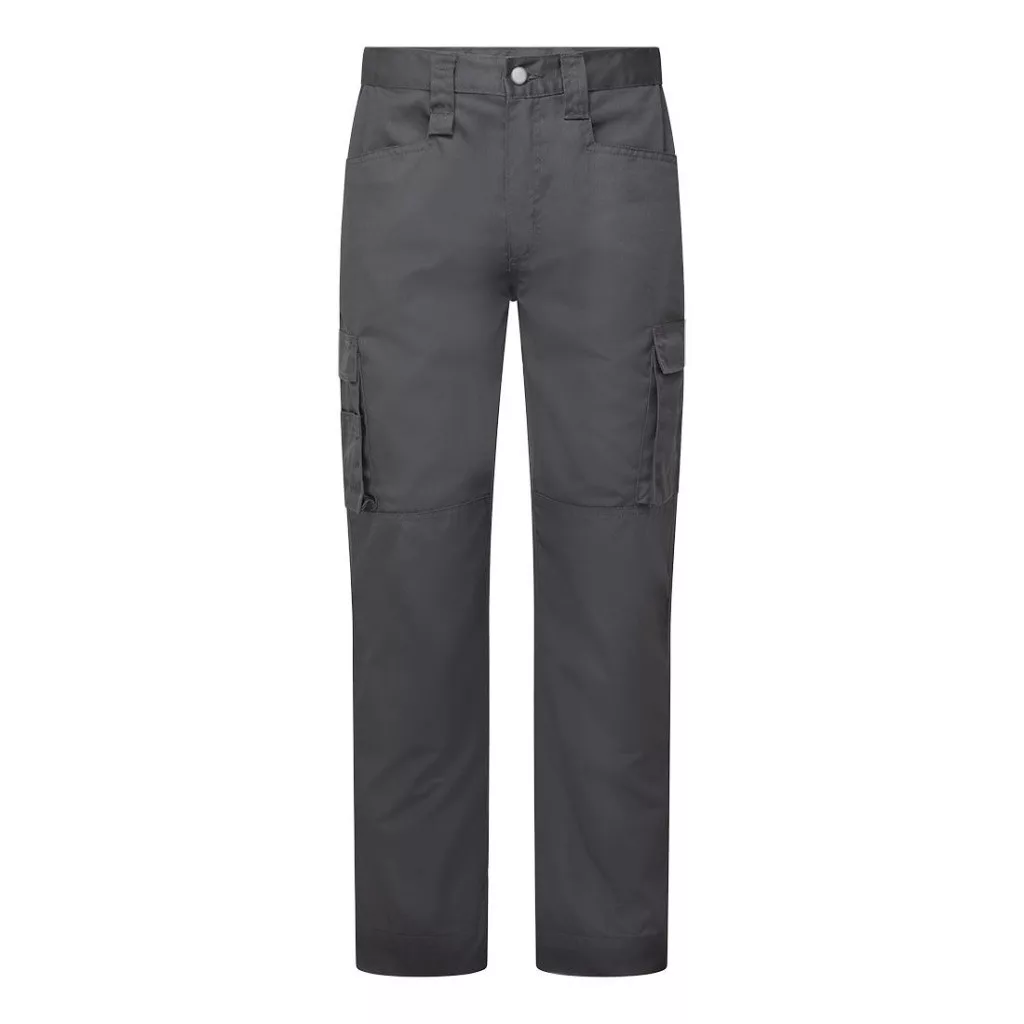 Tartós poliészter/pamut szövettel, háromszoros varrásokkal, oldalt gumírozott derékkal, belső térdvédő zsebekkel, 8 sokoldalú, praktikus tárolózsebbel, 2 oldalsó zsebbel, 2 cargo zsebbel, 2 hátsó zsebbel, telefontartó zsebbel, alulról betölthető térdpárna zsebekkel, normál és hosszú szár között állítható szegéllyel és CE minősítéssel rendelkező nadrág.