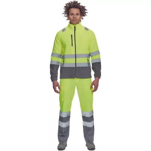 • Hi-Vis férfi polár pulóver 5 cm széles fényvisszavető csíkokkal • cipzáras kivitelben • 1 mellkasi és 2 cipzáras oldalzseb • rugalmas mandzsetták, a pulóver alja húzózsinórral szűkíthető