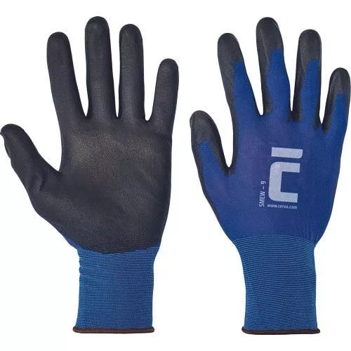 Smew fekete kesztyű nyl-18g/pu tenyér